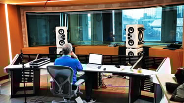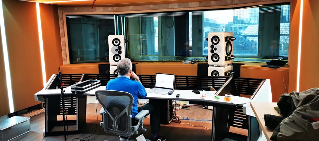 Sechs Tonstudios auf einer Etage mitten zwischen Frankfurts Wolkenkratzer und Altbauten. Insbesondere das Hauptstudio, das Control A, setzte Maßstäbe in der Studiogestaltung, da die Raum-in-Raum Bauweise mittels Akustik-Design-System nicht nur perfekt klingt, sondern auch Akustik und Klimatechnik nahezu geräuschlos verbindet. In der Control A sind zwei herausragende Monitorsysteme im Einsatz: das Neumann KH420-Setup mit KH870 Subwoofern und das einzigartige Barefoot Masterstack 12. Das Barefoot-System, kalibriert mit Unterstützung von Thomas Barefoot, besticht durch außergewöhnliche Auflösung, Schnelligkeit und Pegelfestigkeit. Dieses Setup bietet perfekte Bedingungen für anspruchsvolle Tonregieräume.